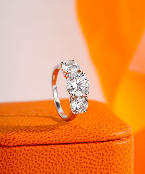 En el Anillo Trilogy, el cristal Étoile™ está engastado en un anillo de plata 925 bañado en platino de 8 capas, que brilla más que el oro blanco.